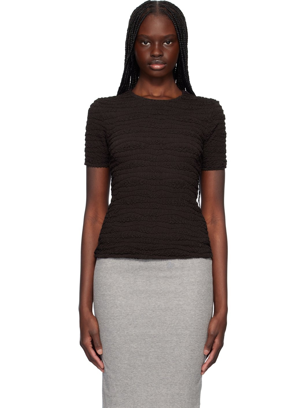 Viscose jersey T-shirt. Shirring throughout. · Crewneck · Full jersey lining Supplier color: Chocolate brown 100% viscose. Made in Italy 251249F110001