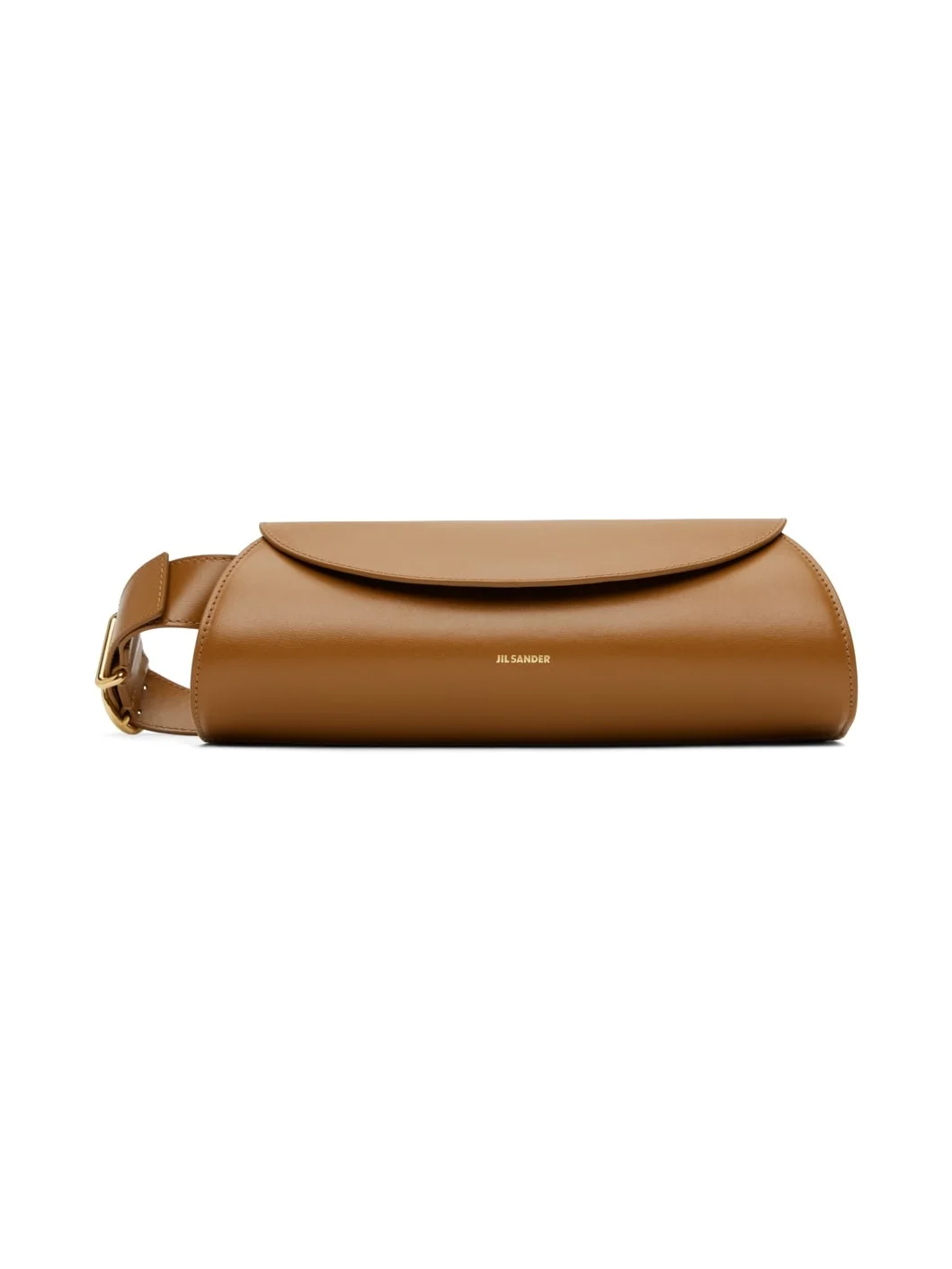 Buffed calfskin shoulder bag in brown. Logo stamp at face. · Adjustable shoulder strap · Foldover flap · Patch pocket at interior · Nappa calfskin lining · H4 x W11.25 x D3.5 in Supplier color: Rust/Copper