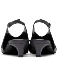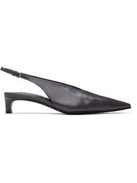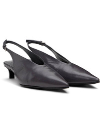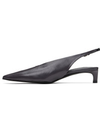 Crinkled deerskin heels in gray. · Pointed toe · Stitch at vamp · Adjustable pin-buckle slingback strap · Logo patch at padded footbed · Buffed leather lining · Covered kitten heel with rubber injection · Polished leather sole with rubber injection · Heel: H1.5" Supplier color: Fog Upper: deerskin. Sole: leather. Made in Italy 251249F122002