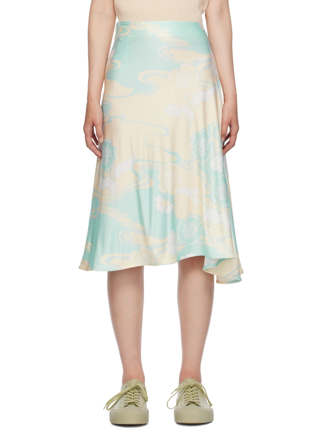 Stretch viscose-blend satin skirt. Graphic printed throughout. · Slit at front · Zip closure at side seam Supplier color: Blue hydrangea 90% viscose, 10% elastane. Made in Italy 231249F092002
