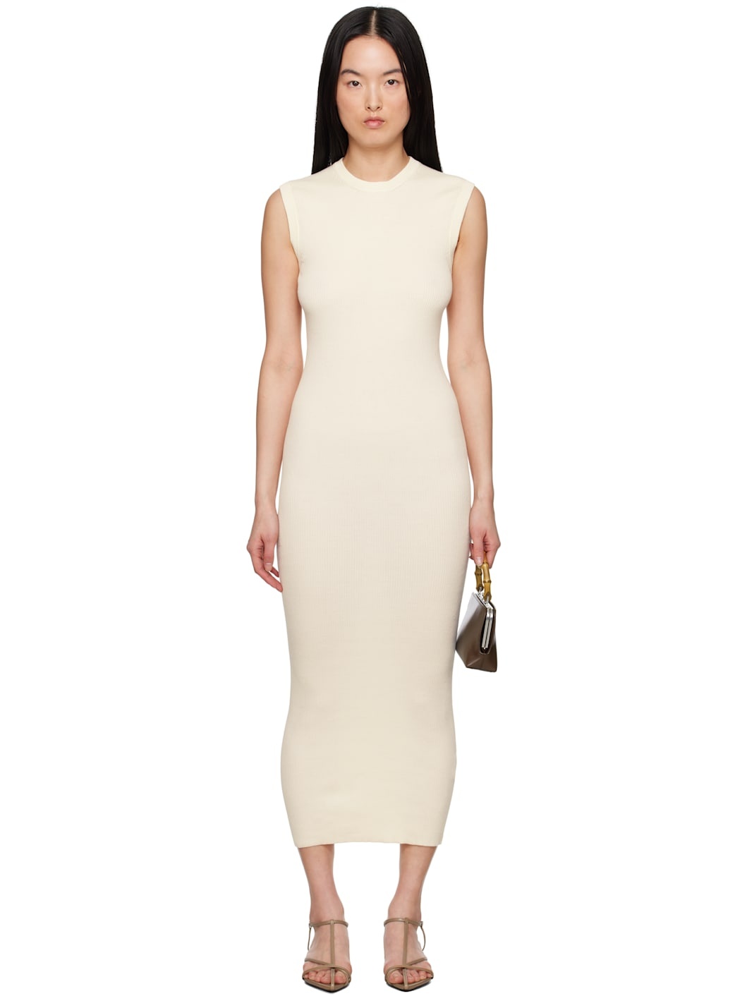 Rib-knit cotton maxi dress. · Crewneck · Logo patch at back collar Supplier color: Porcelain 100% cotton. Made in Italy 251249F055010