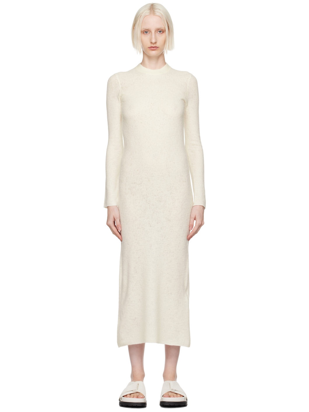 Felted boiled knit wool dress. · Layered construction · Rib knit crewneck · Cotton jersey underlay Supplier color: Eggshell Body 1: 100% wool. Body 2: 100% cotton. Made in Italy 242249F055002