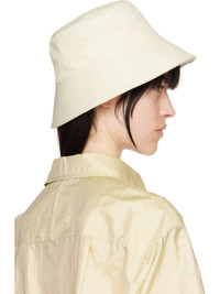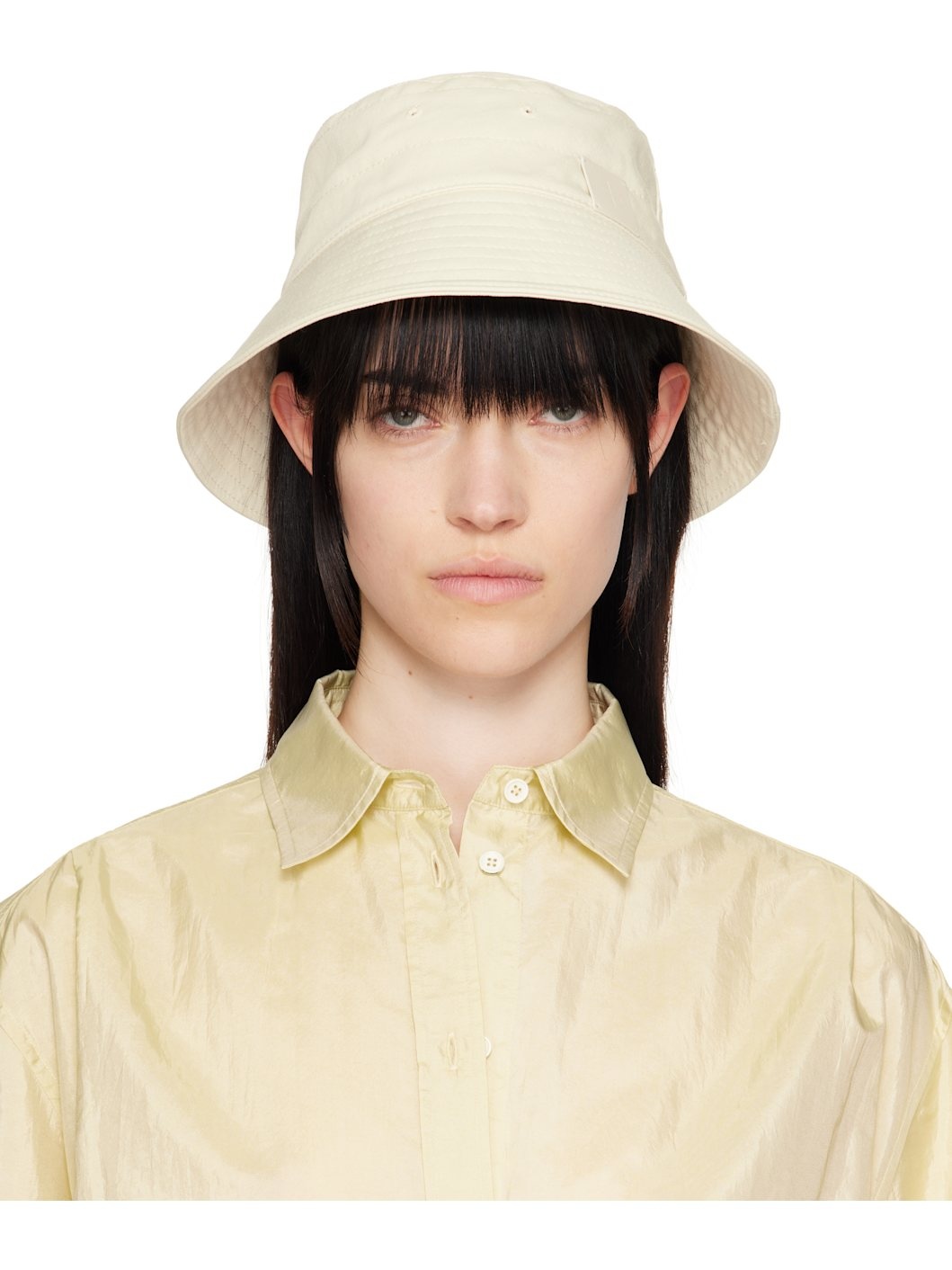 Cotton canvas bucket hat in off-white. · Embroidered eyelets at crown · Leather logo patch at face · Quilted brim · Twill browband · Poplin lining Part of the Jil Sander+ collection. Supplier color: Eggshell 100% cotton. Made in Italy 251249F015005