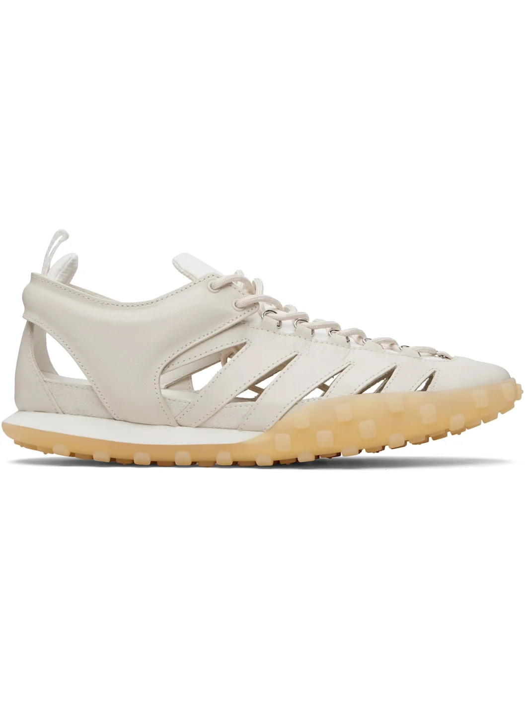 Low-top buffed calfskin and suede sneakers. · Lace-up closure · Ripstop tongue · Padded collar · Pull-loop at heel collar · Cutouts at sides · Treaded rubber sole Supplier color: Cloud Upper: calfskin. Sole: rubber. Made in Italy 261249M237000