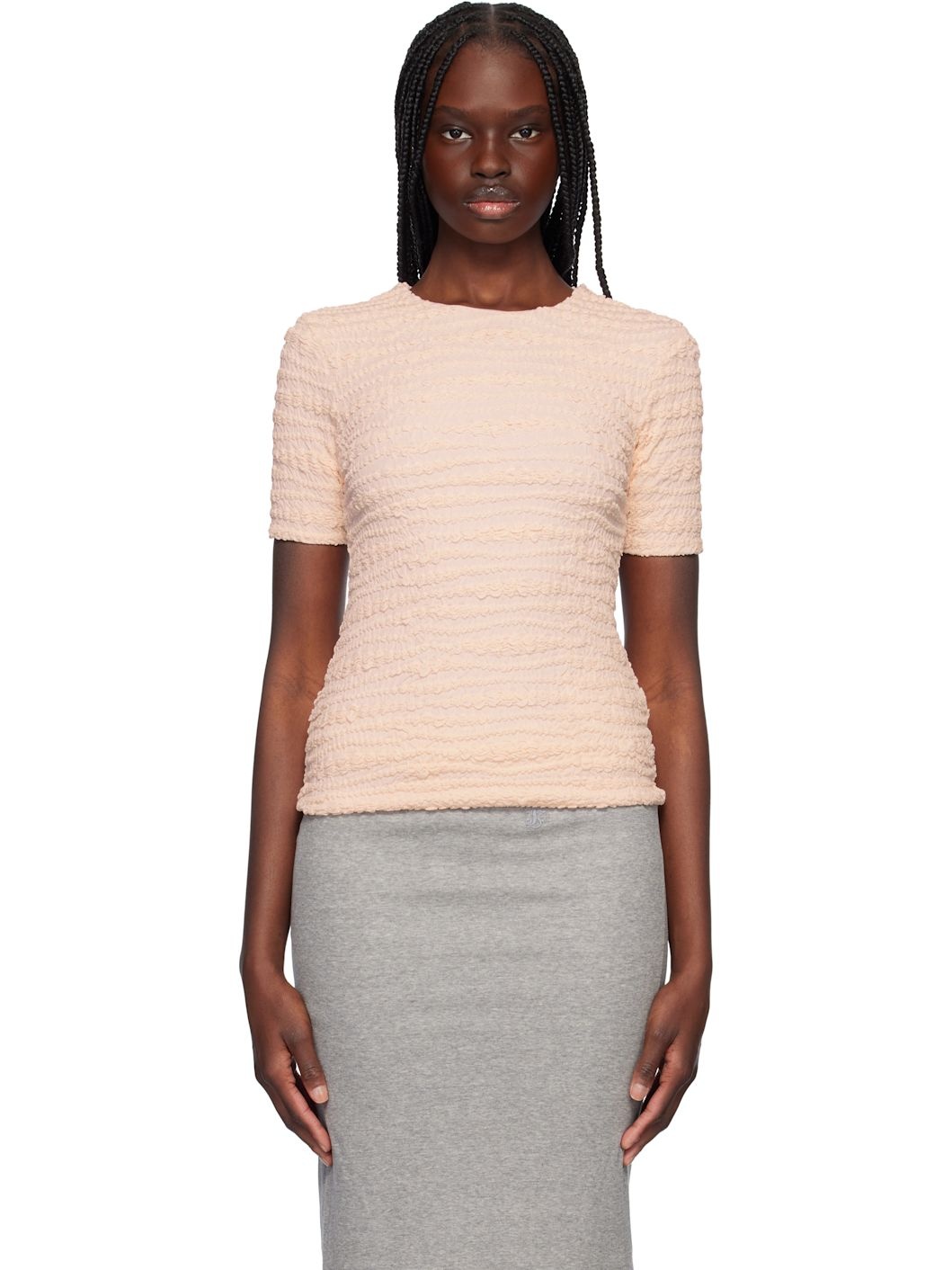Viscose jersey T-shirt. Shirring throughout. · Crewneck · Full jersey lining Supplier color: Confetti 100% viscose. Made in Italy 251249F110000