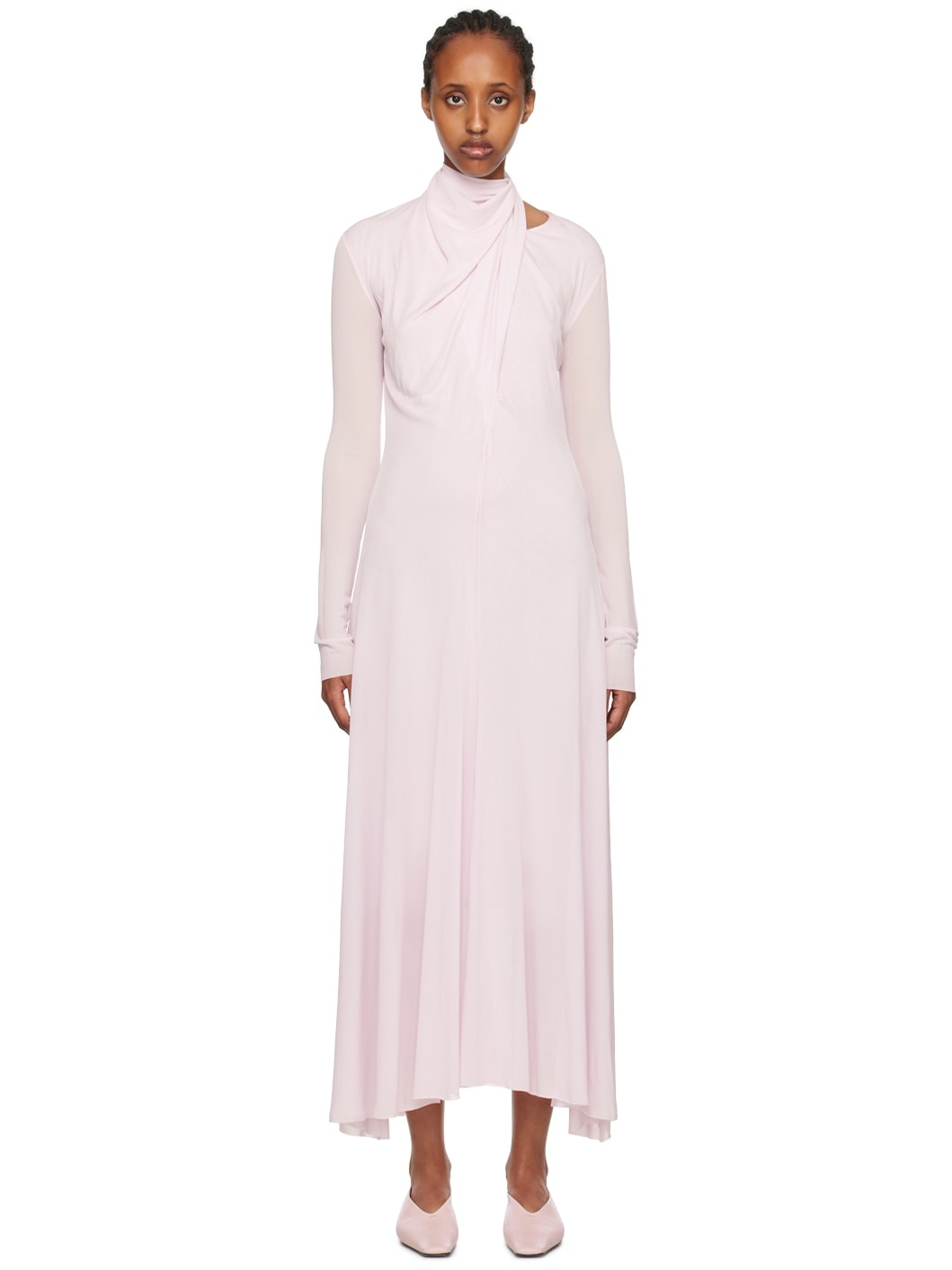Viscose jersey dress. · Draped construction · Scarf-style trim at mock neck · Fully lined Supplier color: Lilac