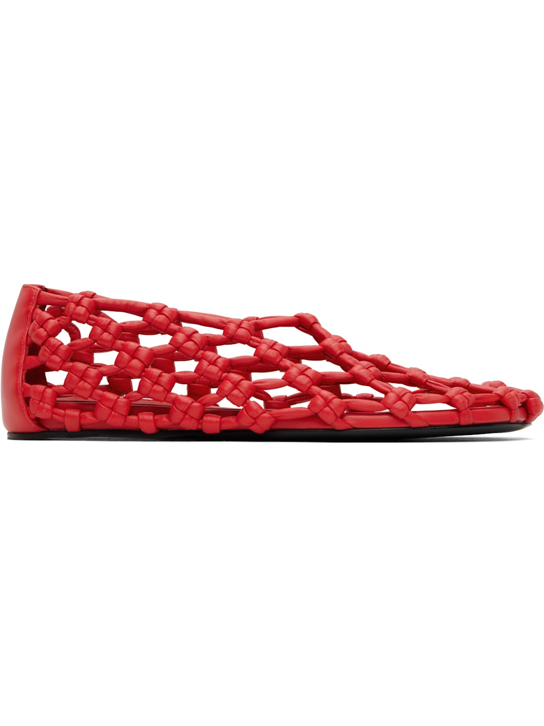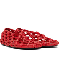 Hand-knotted nappa leather ballerina flats in red. · Square toe · Leather sole with rubber injections Supplier color: Rouge Upper: leather. Sole: leather, rubber. Made in Italy 251249F118001