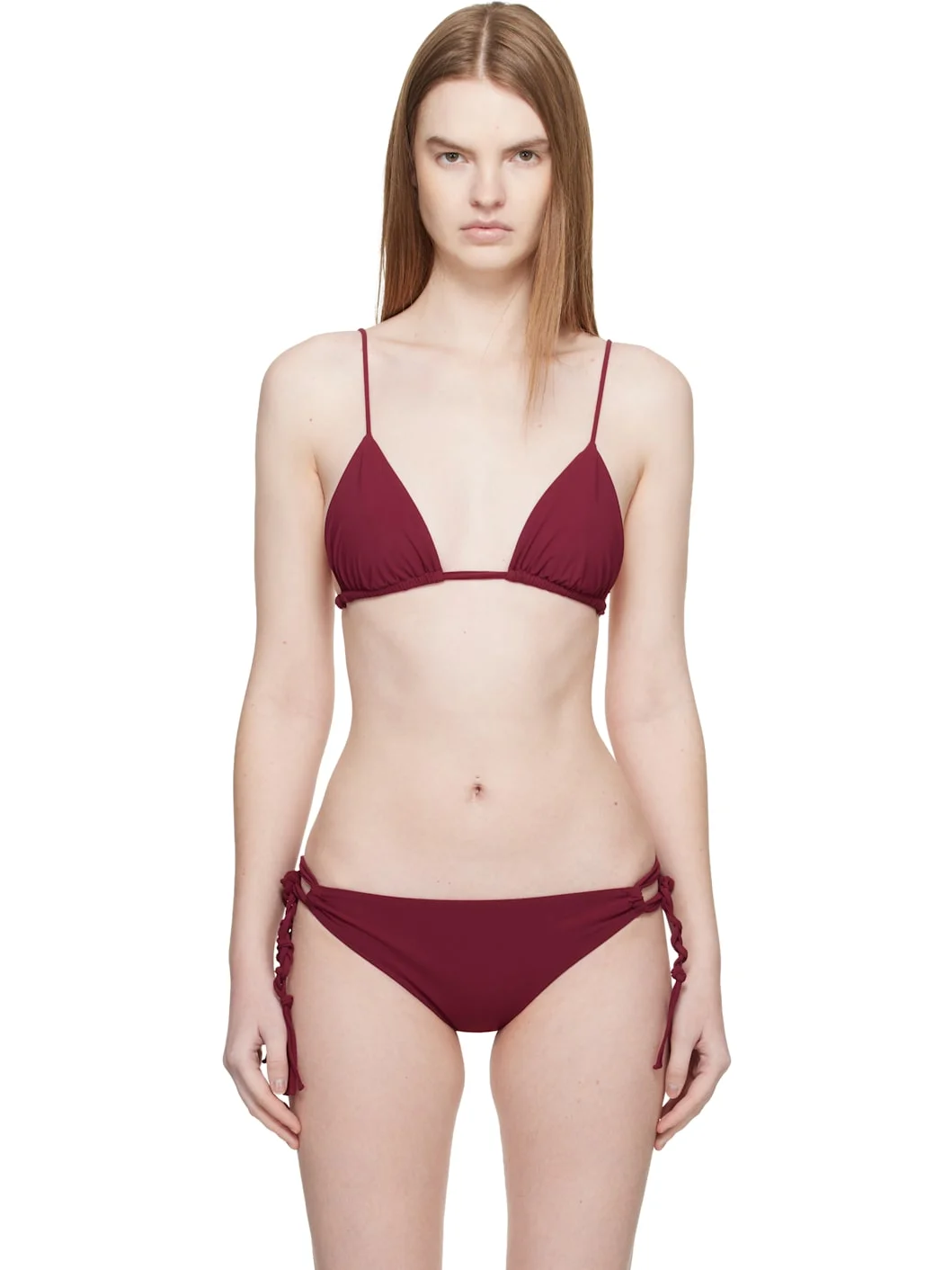 Stretch nylon jersey bikini top. · Sweetheart neck · Fixed spaghetti straps · Braided self-tie strap at back Supplier color: Sumac 75% polyamide, 25% elastane. Made in Italy 261249F105001
