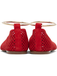 Goatskin suede ballerina flats. · Perforations throughout · Pointed toe · Hinged metal ankle cuff · Nappa leather lining · Stacked leather heel with rubber injection · Calfskin sole Supplier color: Rouge Upper: goatskin. Sole: calfskin. Made in Italy 261249F118001