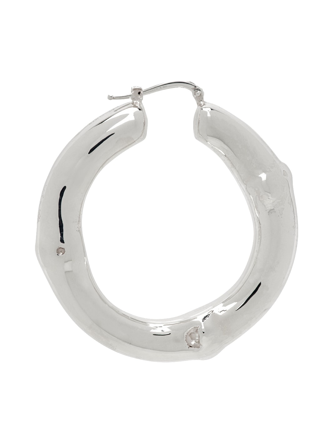 Handcrafted single hoop earring in silver-tone brass. Textured detailing throughout. · Hinged-post fastening · D1.5" Supplier color: Silver Brass. Made in Italy 231249M144019