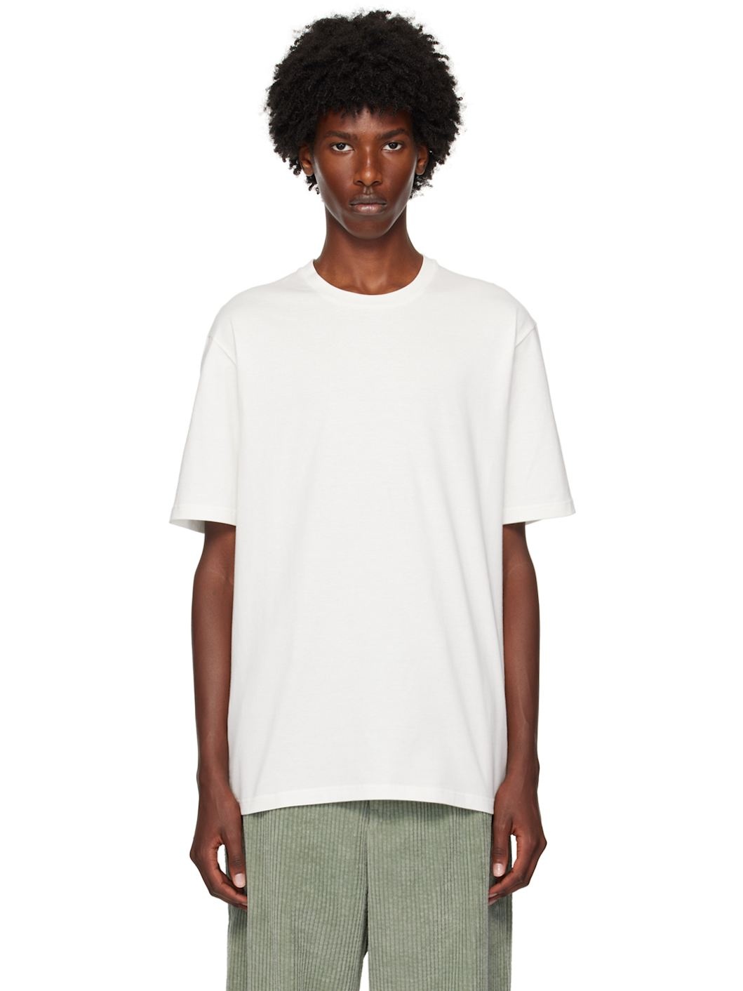 Cotton jersey T-shirt. · Rib knit crewneck · Logo printed at back Supplier color: Coconut 100% cotton. Made in Italy 242249M213006