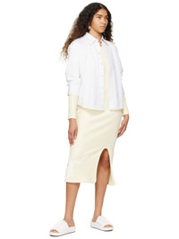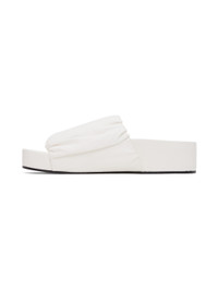Nappa calfskin slip-on sandals in white. · Open round toe · Strap with ruched detailing at vamp · Covered platform midsole · Rubber injection at leather outsole · Platform: H1 in · Heel: H1.5 in Supplier color: Optic white Upper: calfskin. Sole: leather. Made in Italy 231249F124008