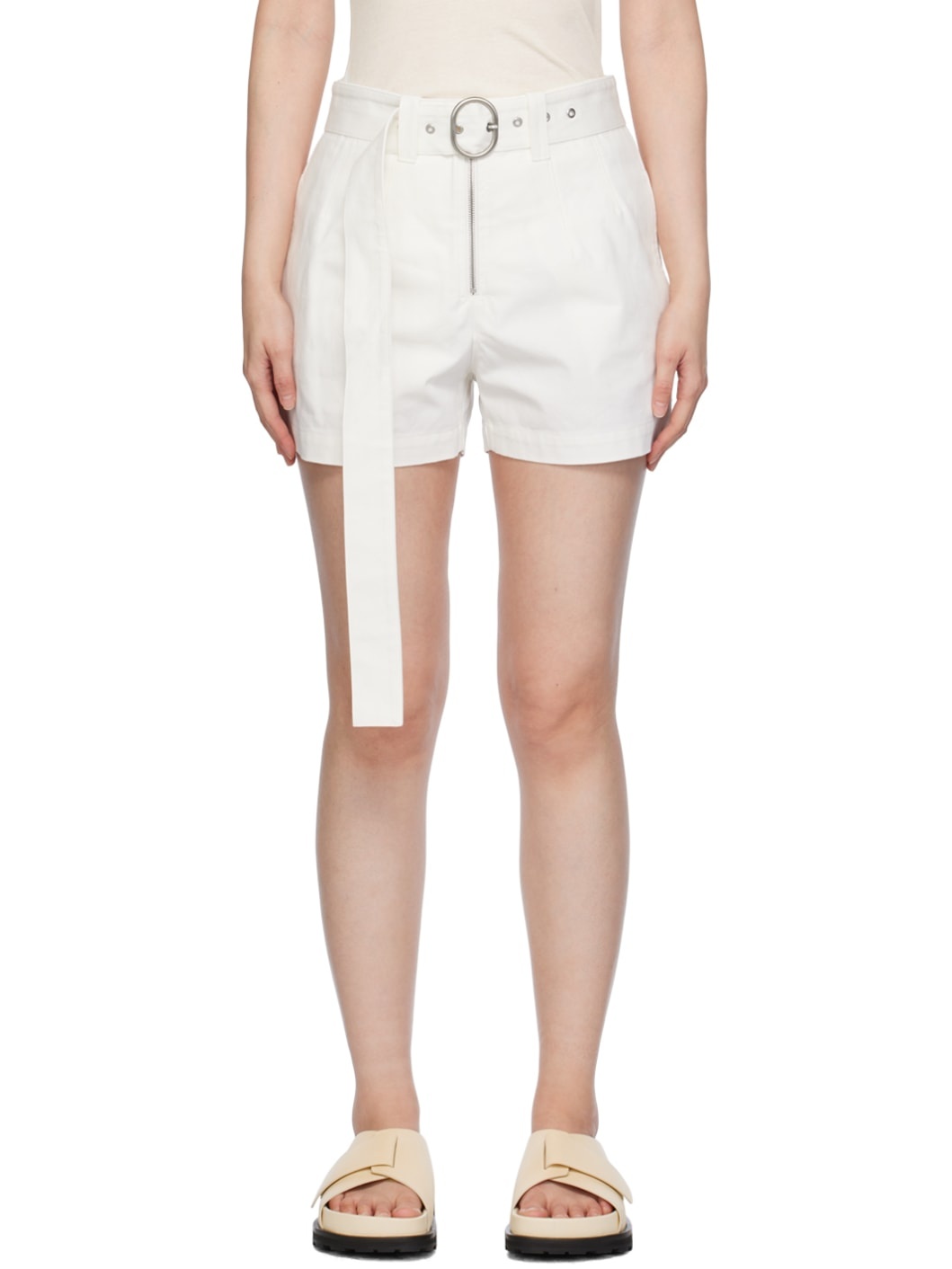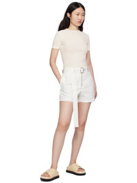 Relaxed-fit cotton canvas shorts. · Belt loops and pin-buckle belt · Four-pocket styling · Exposed zip-fly · Darts at front · Calfskin logo patch at back waistband Supplier color: Optic white Body: 100% cotton. Trim: 100% calfskin. Lining: 100% cotton. Made in Italy 241249F088006