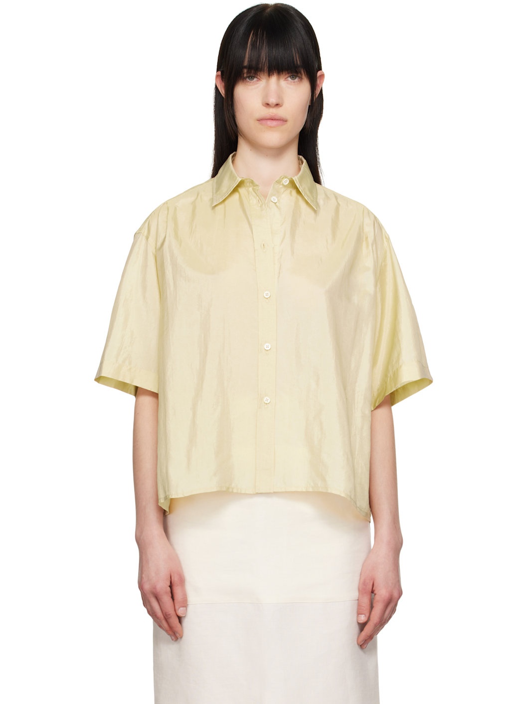 Boxy-fit nylon- and silk-blend taffeta shirt. · Spread collar · Button closure · Cropped hem · Dropped shoulders · Locker loop at back yoke · Embroidered logo patch at back hem Part of the Jil Sander+ collection. Supplier color: Almond 64% polyamide, 36% silk. Made in Italy 251249F109010