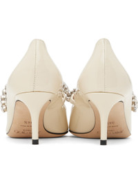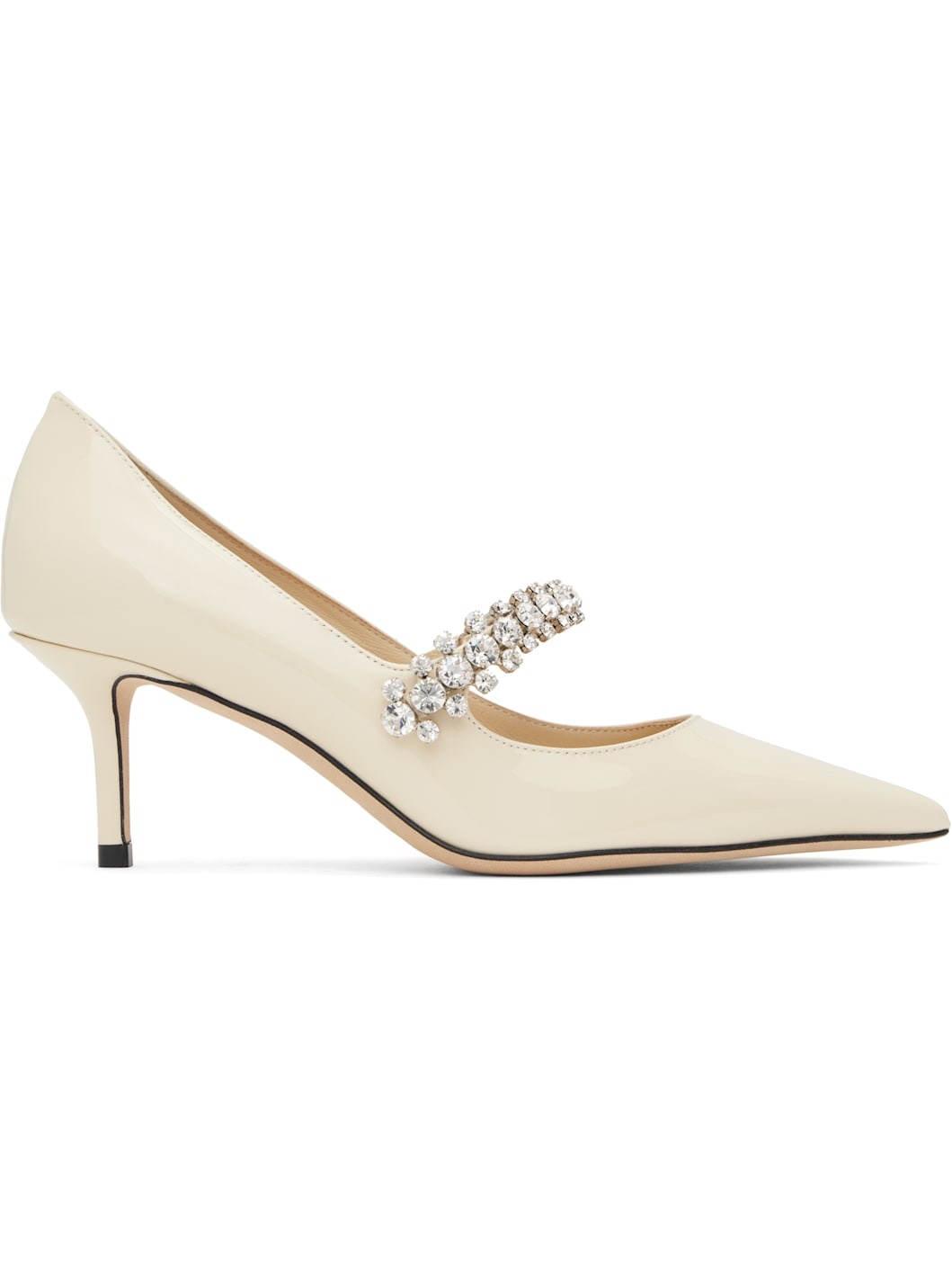 Patent leather heels in beige. · Pointed toe · Crystal-cut strap at vamp · Suede and buffed leather lining · Covered kitten heel with rubber injection · Nubuck sole · Heel: H2.5" Supplier color: Linen Leather. Made in Italy 251528F122048