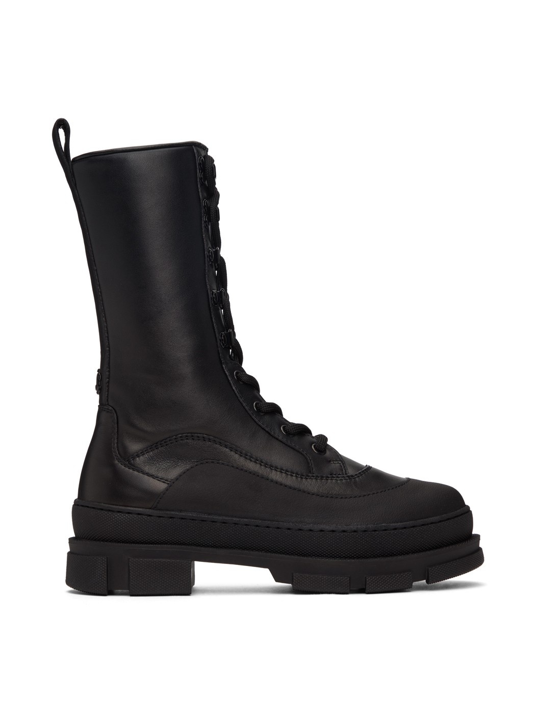 Calf-high grained leather boots in black. · Lace-up closure · Rubberized logo patch at padded tongue · Pull-loop at padded collar · Logo hardware at heel counter · Grained leather lining · Rubberized trim at vamp · Treaded rubber sole Supplier color: Black Upper: leather. Sole: rubber. Made in Italy 232528F113026