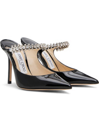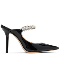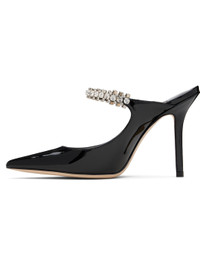 Bing 100 Black Patent Leather Mules with Crystal Strap
