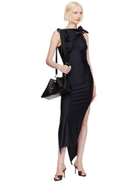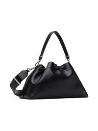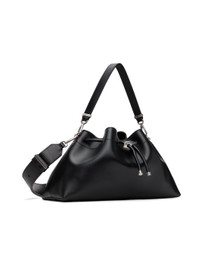 LWG-certified buffed calfskin top handle bag in black. · Detachable carry handle · Adjustable and detachable shoulder strap · Logo stamp at face · Cord-lock drawstring closure · Zip pocket at interior · Buffed calfskin lining · Logo-engraved antiqued silver-tone hardware · H7.5" x W13.25" x D5" Supplier color: Black/Antique silver