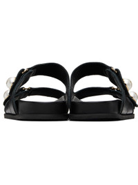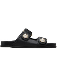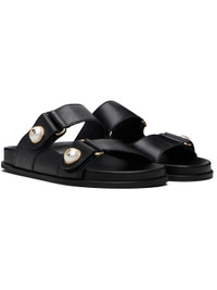 Fayence Sandal Black Leather Flat Sandals with Pearl Embellishment