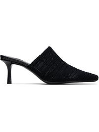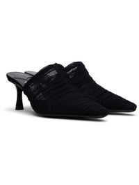 Semi-sheer ruched tulle mules in black. · Pointed square toe · Covered heel with rubber injection · Leather sole · Heel: H2.5" Supplier color: Black Upper: textile. Sole: leather, rubber. Made in Italy 251528F122005