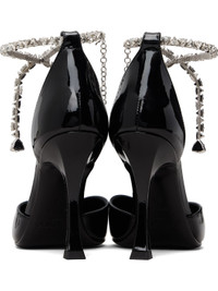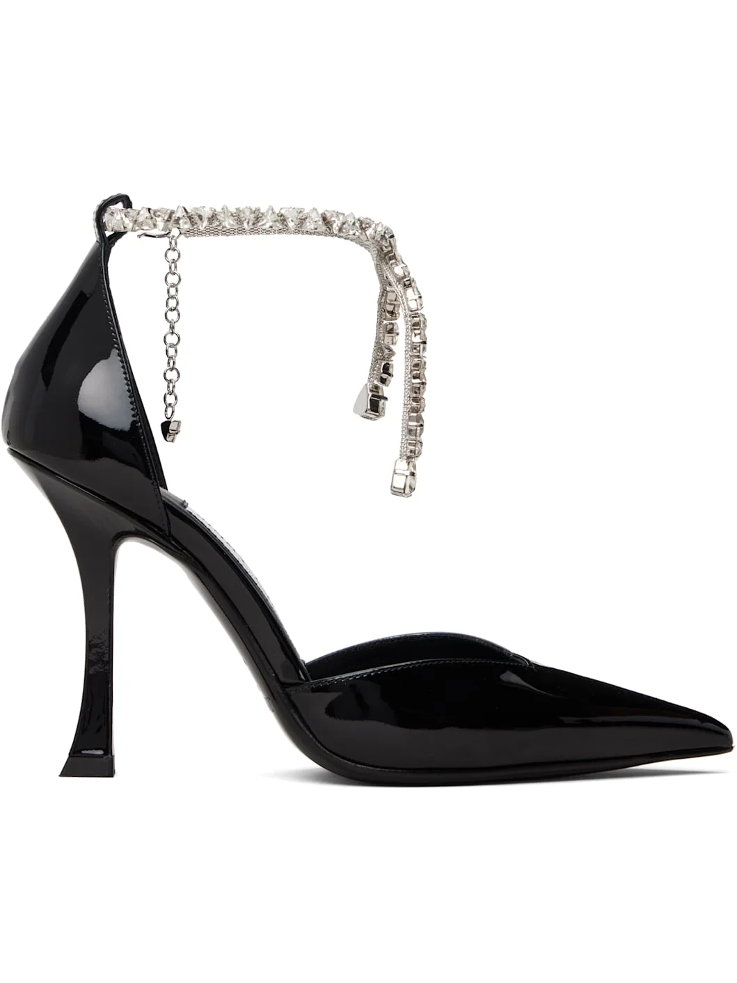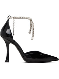 Patent leather heels. · Pointed toe · Cup-chain ankle strap with hook-eye fastening · Buffed leather lining · Covered stiletto heel with rubber injection · Leather sole with rubber injection · Heel: H3.75" Supplier color: Black Upper: leather. Sole: leather, rubber. Made in Italy 261528F122025