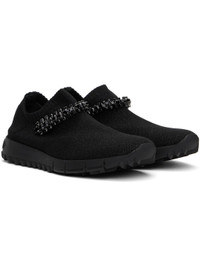Low-top knit sneakers in black. · Metallic thread detailing throughout · Crystal-cut detailing at vamp · Rib-knit sock-style collar · Logo embossed at heel · Treaded rubber sole Supplier color: Black Upper: textile. Sole: rubber. Made in Italy 242528F128001