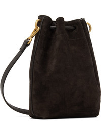 Calfskin suede shoulder bag. · Buffed calfskin trim throughout · Adjustable and detachable crossbody strap · Drawstring closure · Buffed calfskin lining · Logo-engraved gold-tone hardware · H7.5" x W5.5" x D1.25" Supplier color: Tan/Gold Calfskin. Made in Italy 252528F048002