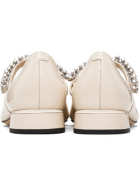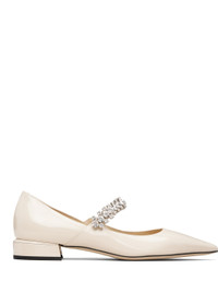 Patent leather flats. · Pointed toe · Partially elasticized strap with rhinestones at vamp · Logo patch at padded footbed · Logo embossed at heel · Grained leather lining · Block heel with rubber injection · Nubuck sole Supplier color: Linen Leather. Made in Italy 262528F118000