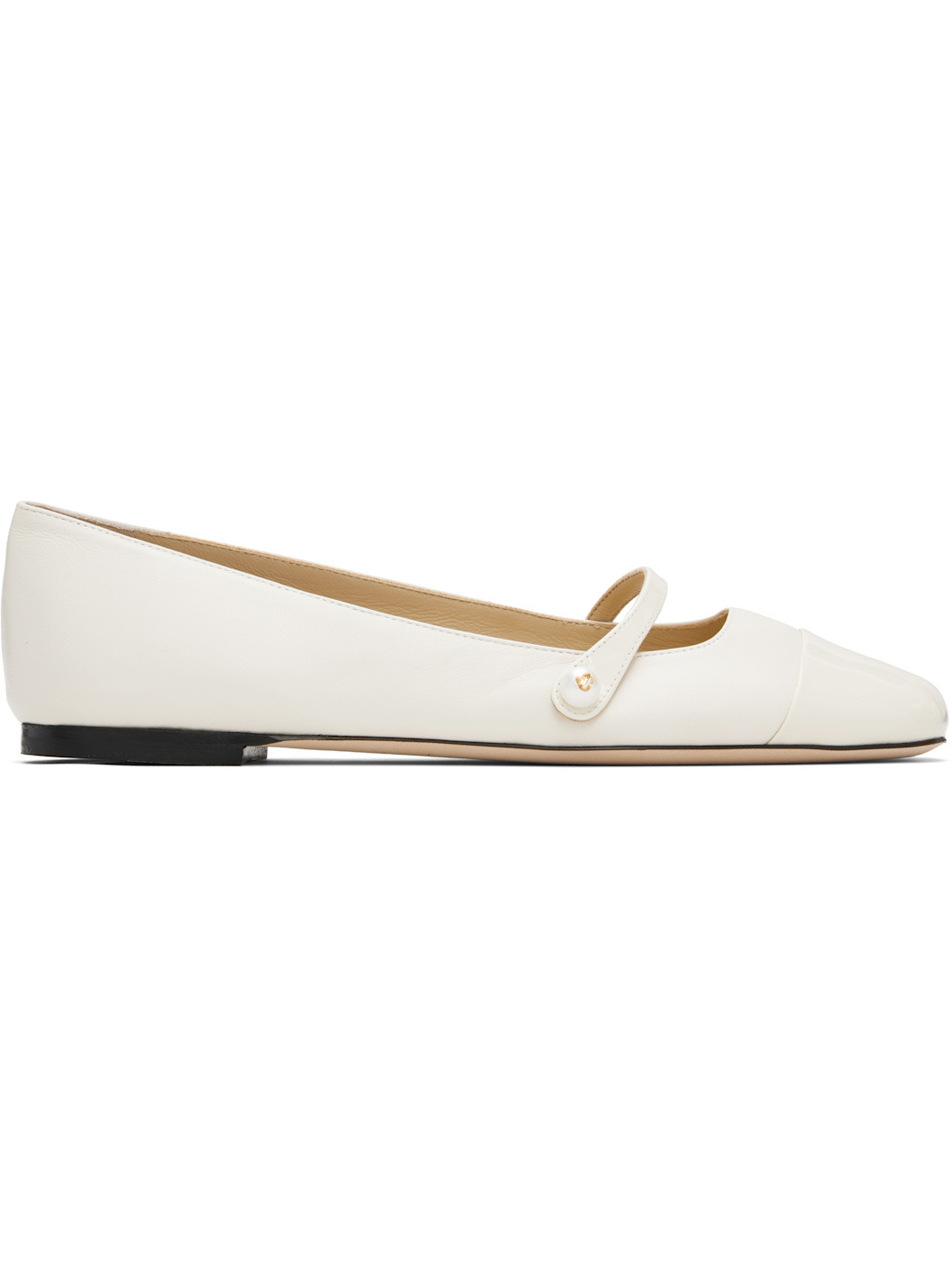 Grained nappa leather ballerina flats. · Square patent leather cap toe · Faux-pearl and logo hardware at fixed strap · Nubuck sole Supplier color: Latte/Latte Leather. Made in Italy 251528F118009