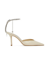 Saeda 85 Linen Patent Leather Pumps with Crystal Embellishment
