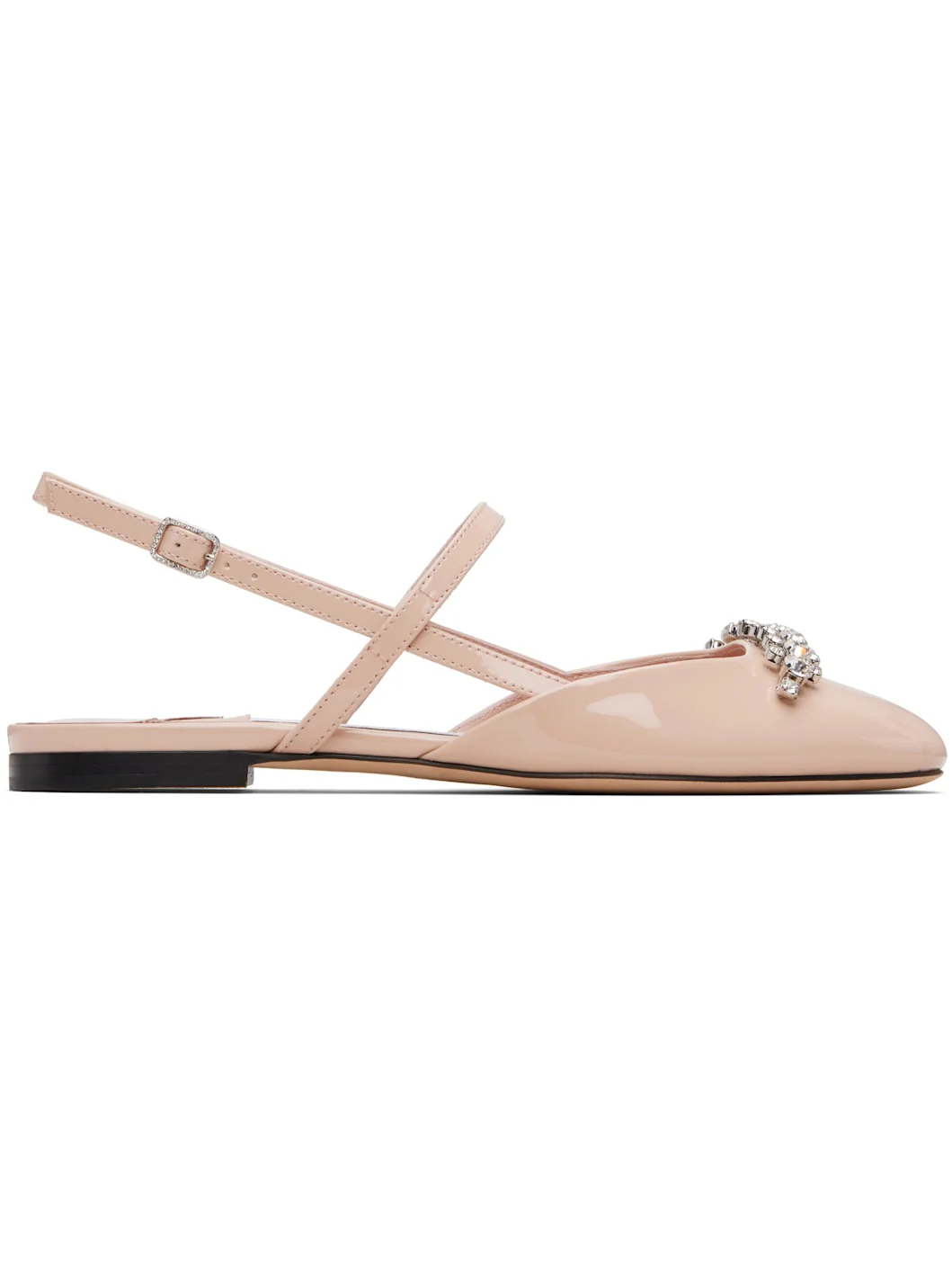 Patent calfskin ballerina flats. · Crystal-cut accents at vamp · Pin-buckle slingback strap · Grained calfskin lining · Stacked leather with rubber injection · Calfskin nubuck sole Supplier color: Macaron Calfskin. Made in Italy 252528F118001