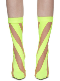 + Mugler 100 two-tone neon jersey and mesh sock boots