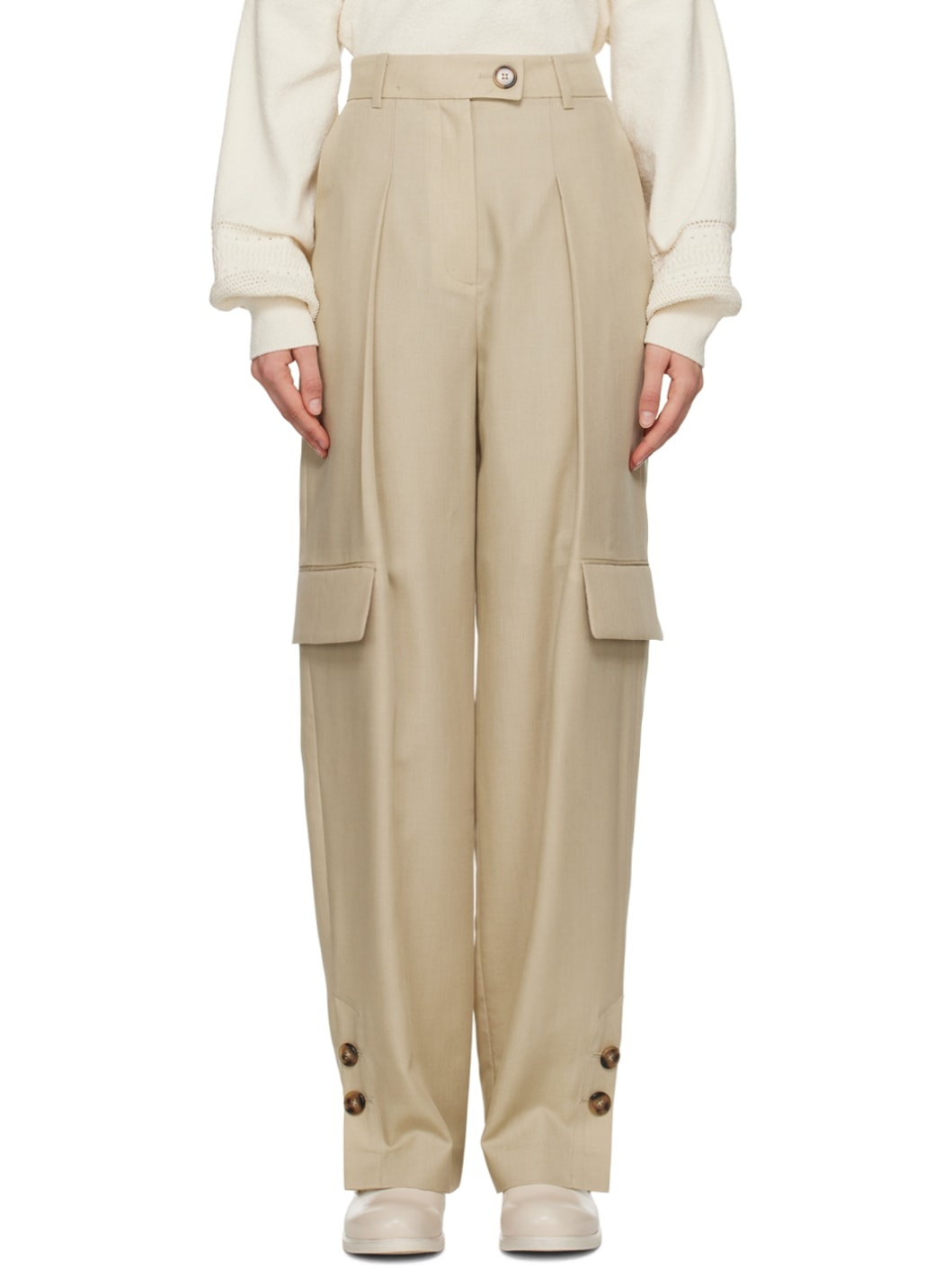Tencel and wool-blend broadcloth trousers. · Belt loops · Four-pocket styling · Zip-fly · Pleats at front · Buttoned vent at cuffs · Flap pocket at outseams · Partial satin lining Supplier color: Beige Body: 70% tencel, 30% wool. Lining: 100% polyester. Made in South Korea 231789F087001