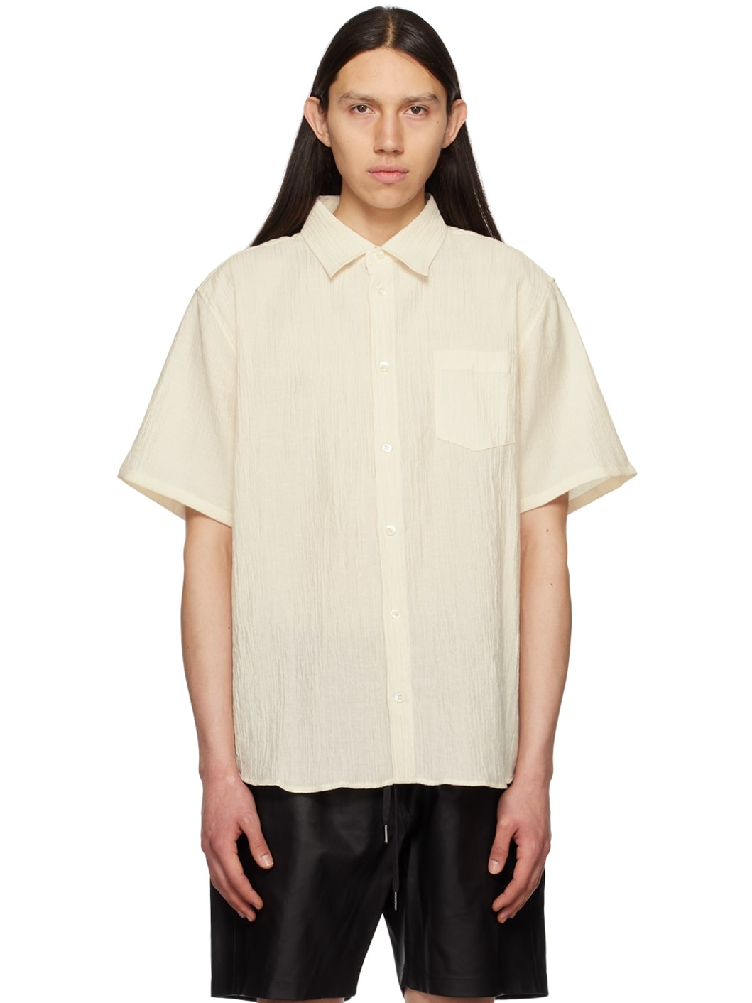 Cotton- and nylon-blend seersucker shirt. · Spread collar · Button closure · Patch pocket at chest · Shirttail hem · Inverted box pleat at back yoke Supplier color: Salt 74% cotton, 26% nylon. Made in Japan 231761M192017