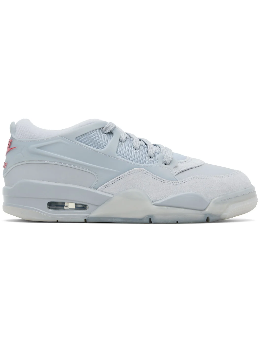 Low-top buffed leather and suede sneakers. · Rubberized overlay throughout · Lace-up closure · Logo embroidered at padded tongue · Padded collar · Swoosh applique at sides · Logo embossed at heel tab · Fleece lining · Max Air unit at foam rubber midsole · Treaded rubber sole Please note that this item may be shipped only within North America. Supplier color: Wolf grey/Wolf grey/Neutral grey/Varsity red Upper: leather. Sole: rubber. Made in Viet Nam 261445M237005