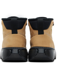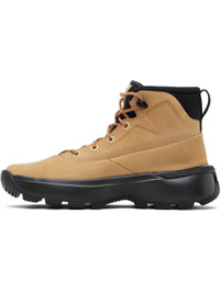 Ankle-high nubuck boots. · Lace-up closure · Logo patch at padded tongue · Padded collar · Logo hardware at outer side · Pull-loop at heel tab · Fleece lining · Treaded rubber sole Please note that this item may be shipped only within North America. Supplier color: Flax/Black Upper: leather. Sole: rubber. Made in Viet Nam 261445M255002
