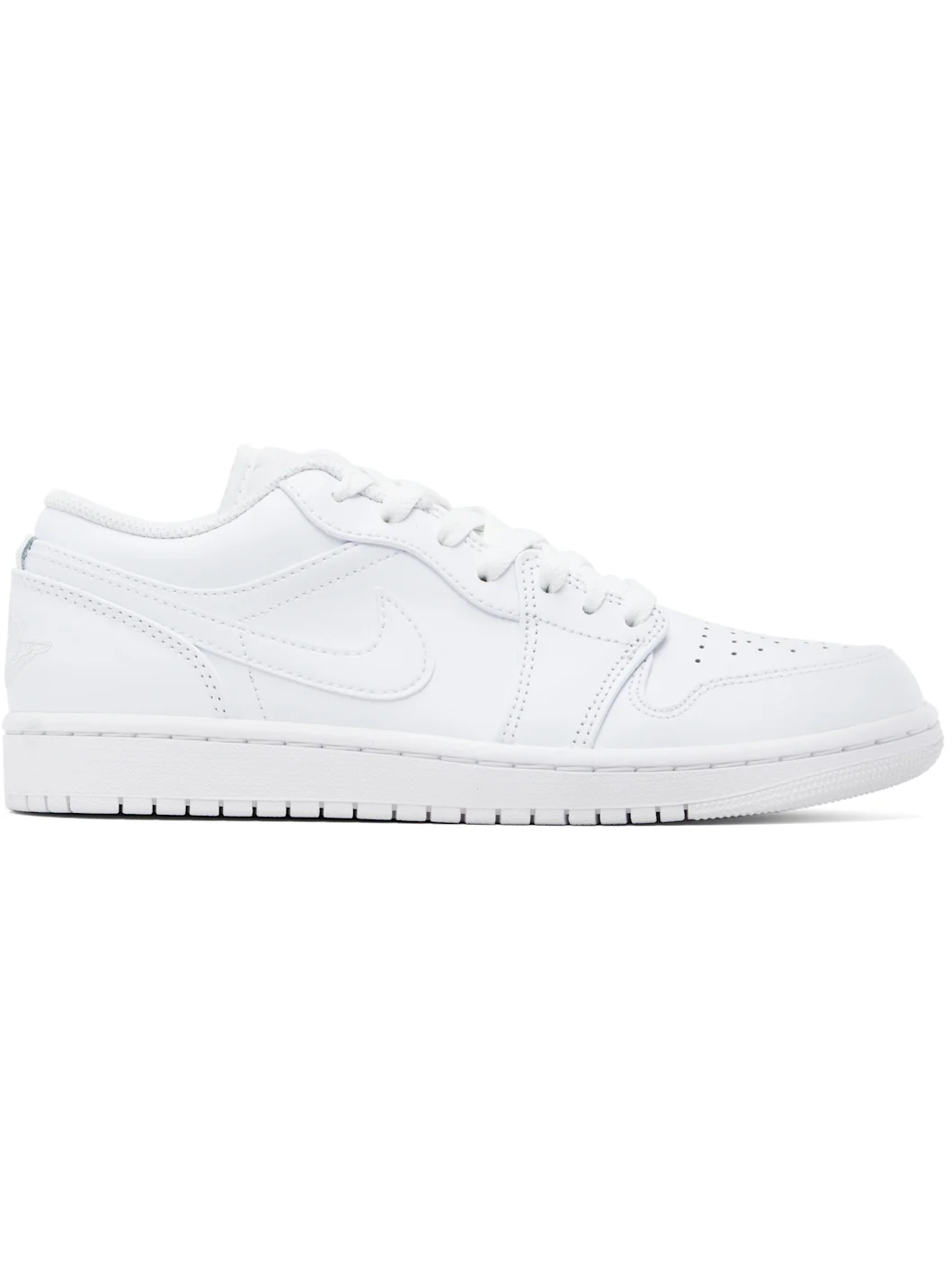 Low-top buffed leather sneakers. · Perforated detailing at toe · Lace-up closure · Logo embroidered at tongue and heel counter · Padded tongue and collar · Swoosh applique at sides · Mesh lining · Treaded rubber sole Please note that this item may be shipped only within North America. Supplier color: Triple white Upper: leather. Sole: rubber. Made in Viet Nam 261445M237018