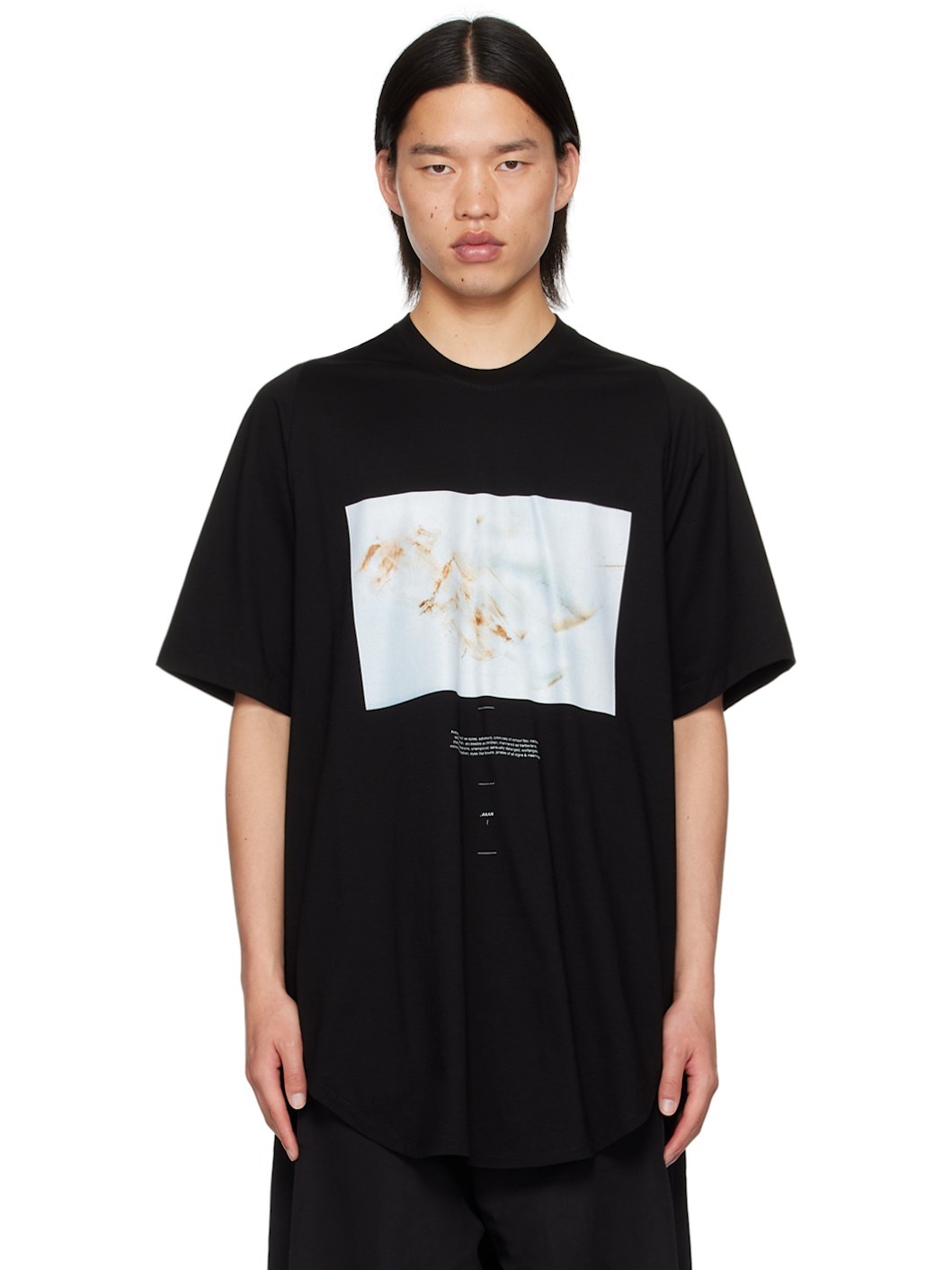 Cotton jersey T-shirt. · Rib knit crewneck · Graphic and text printed at front · Curved hem Supplier color: Black 100% cotton. Made in Japan 242420M213003