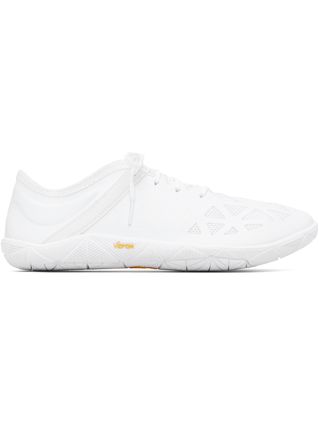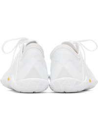 Low-top mesh and buffed faux-leather sneakers in white. · Bonded trim throughout · Offset lace-up closure · Logo patch at tongue · Logo printed at outer side and heel tab · Treaded Vibram® rubber sole Part of the Junya Watanabe x New Balance collaboration. Supplier color: White Upper: textile, synthetic. Sole: rubber. Made in Viet Nam 252253M237002
