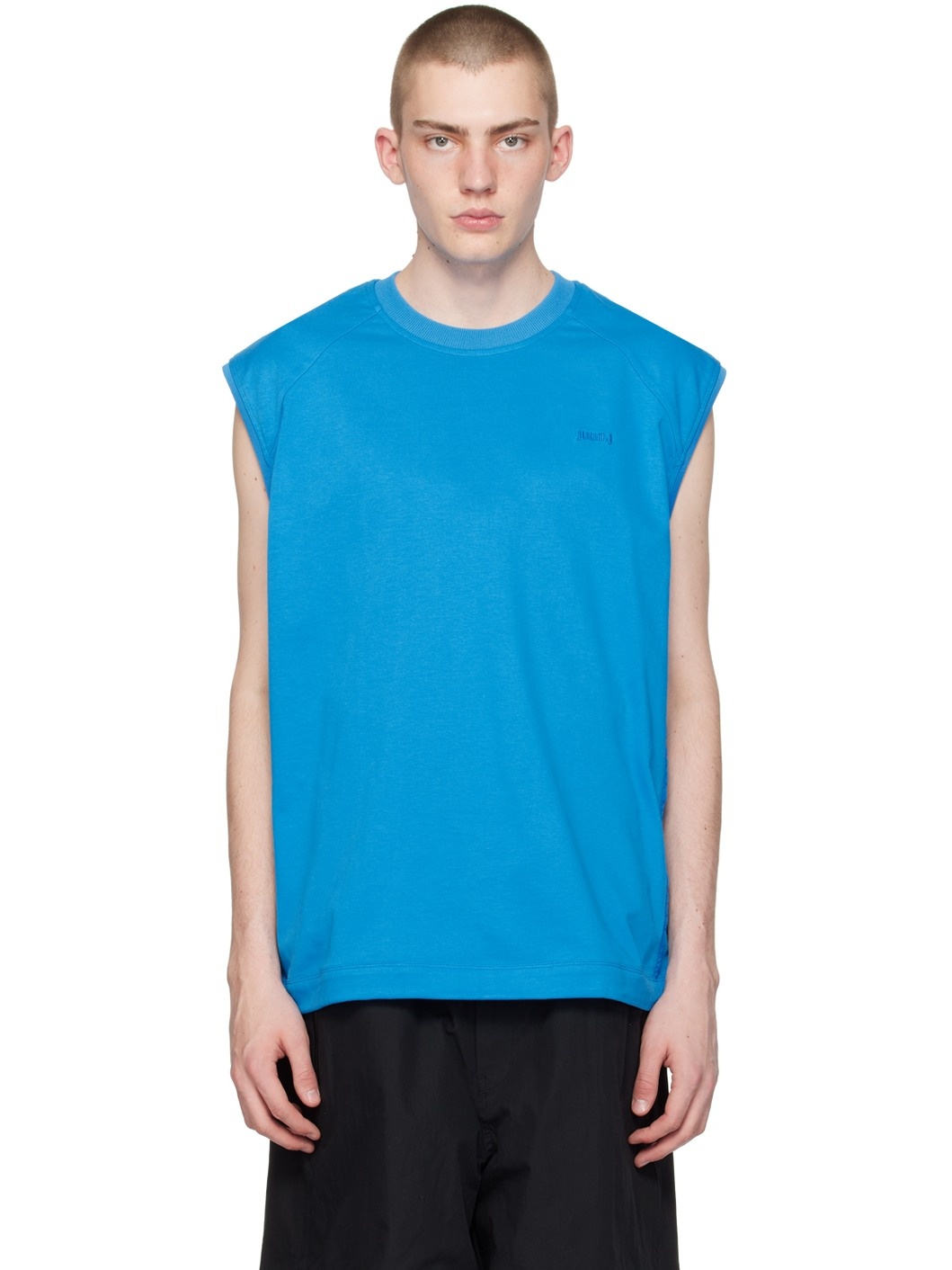 Cotton jersey tank top. · Paneled construction · Rib knit crewneck and armscyes · Logo embroidered at front · Concealed bungee-style drawstring at hem · Polyester taffeta stripes at side seams Supplier color: Blue Body: 100% cotton. Trim: 95% polyester, 5% polyurethane. Made in South Korea 241343M214000