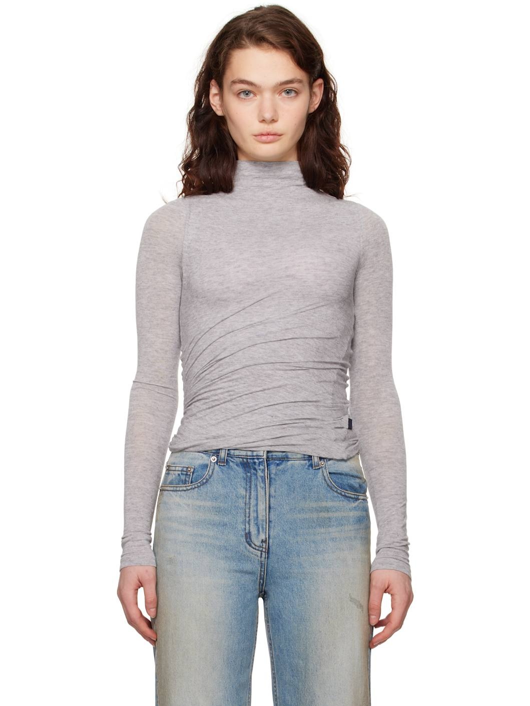 Gray Waist Shirring Turtleneck