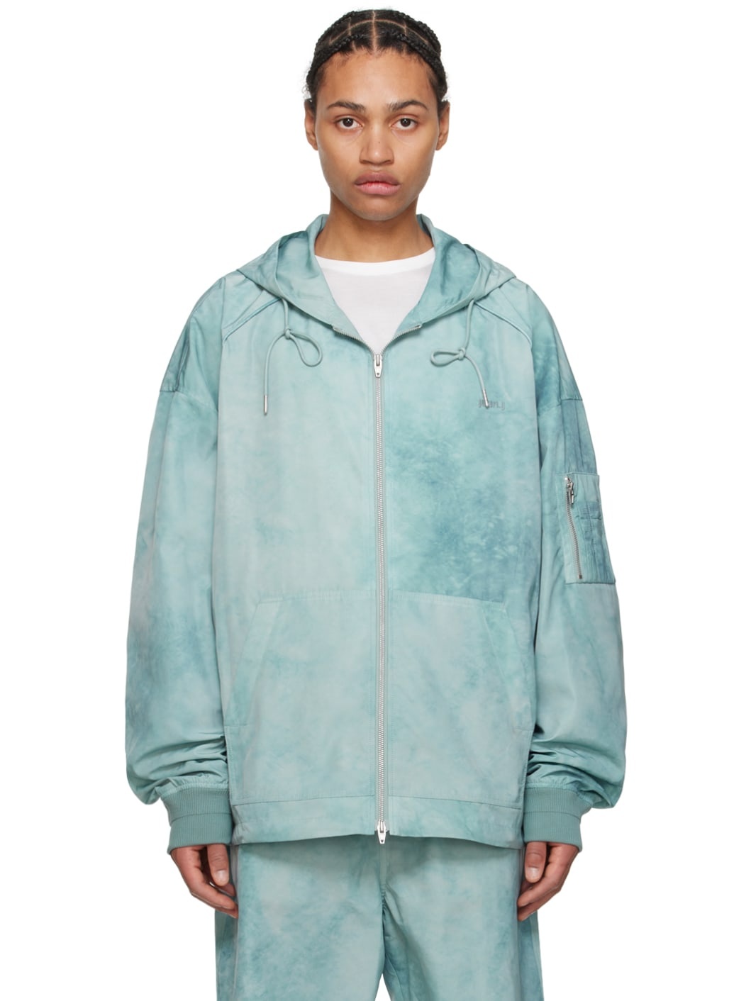 Polyester taffeta jacket. Dyed pattern throughout. · Drawstring at hood · Two-way zip closure · Logo embroidered at chest · Patch pockets · Bungee-style drawstring at hem · Saddle shoulders · Ruching at sleeves and back · Rib knit cuffs · Full mesh lining Supplier color: Green 100% polyester. Made in South Korea 241343M202012