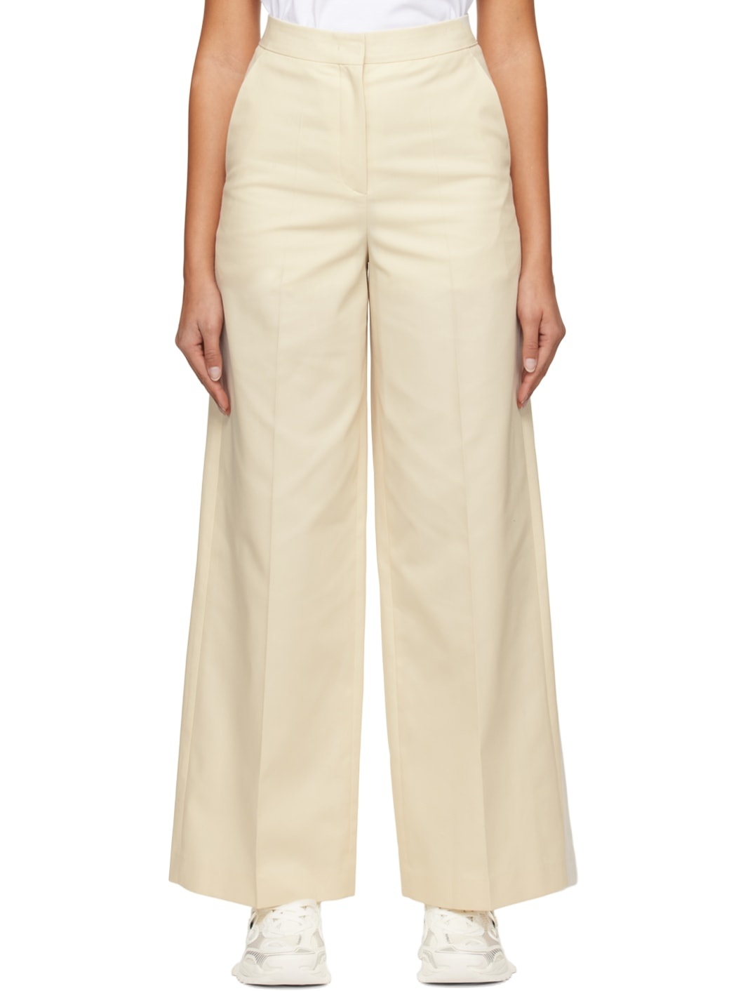 Polyester- and cotton-blend twill trousers. · Four-pocket styling · Zip-fly · Creased legs Supplier color: Ivory 65% polyester, 35% cotton. Made in South Korea 231343F087009