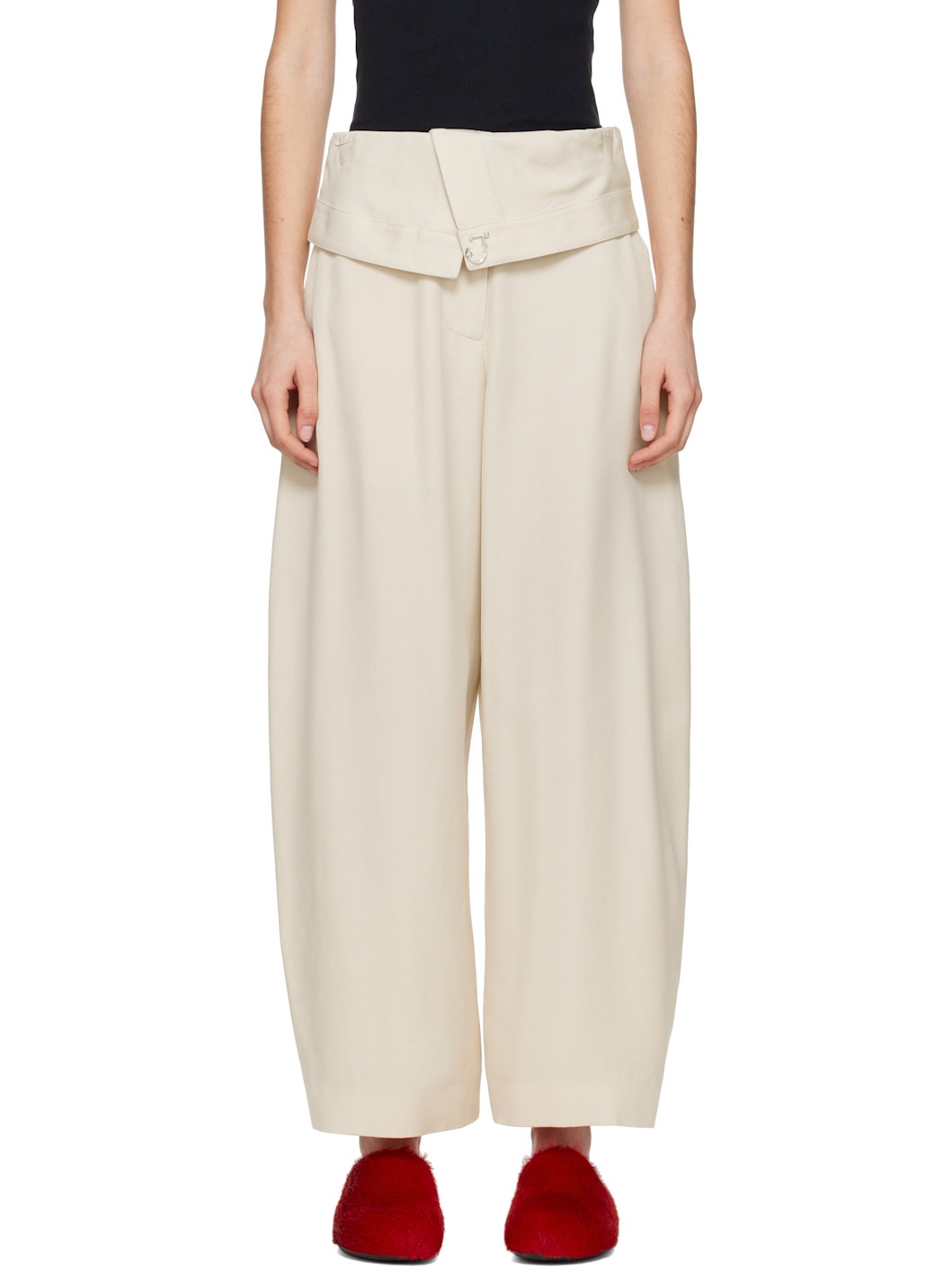 Beige Fold-Over Trousers
