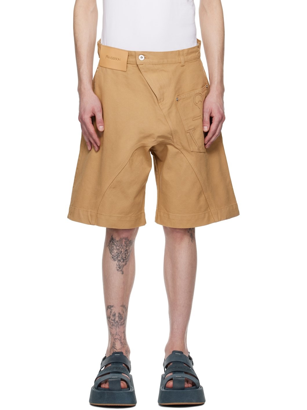 Beige Twisted Workwear Shorts