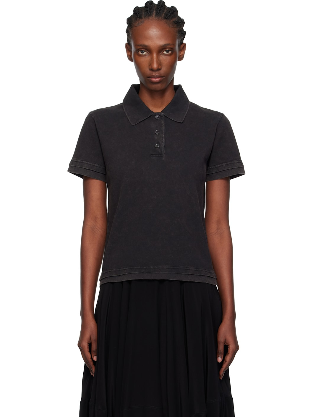 Cotton pique polo. · Fading throughout · Rib-knit spread collar · Three-button placket · Layered hem and cuffs · Logo embroidered at back collar Supplier color: Washed black 100% cotton. Made in Portugal 252477F108002