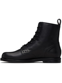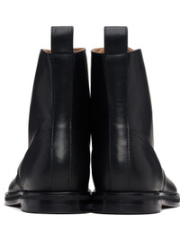 Ankle-high buffed leather boots. · Lace-up closure · Blanket stitching at sides · Pull-loop at heel collar · Stacked leather heel with rubber injection · Leather sole Supplier color: Black Upper: leather. Sole: leather, rubber. Made in Italy 252477M255002