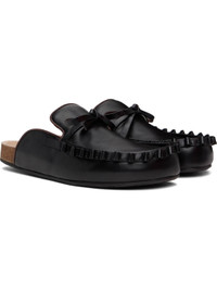 Buffed calfskin slip-on loafers in black. · Piping in brown throughout · Ruffles at moc toe · Bow accent at vamp · Logo-embossed molded suede footbed · Cork midsole · Treaded rubber sole Supplier color: Black Upper: calfskin. Sole: cork, rubber. Made in Italy 251477F121005
