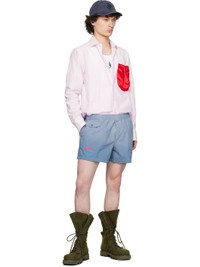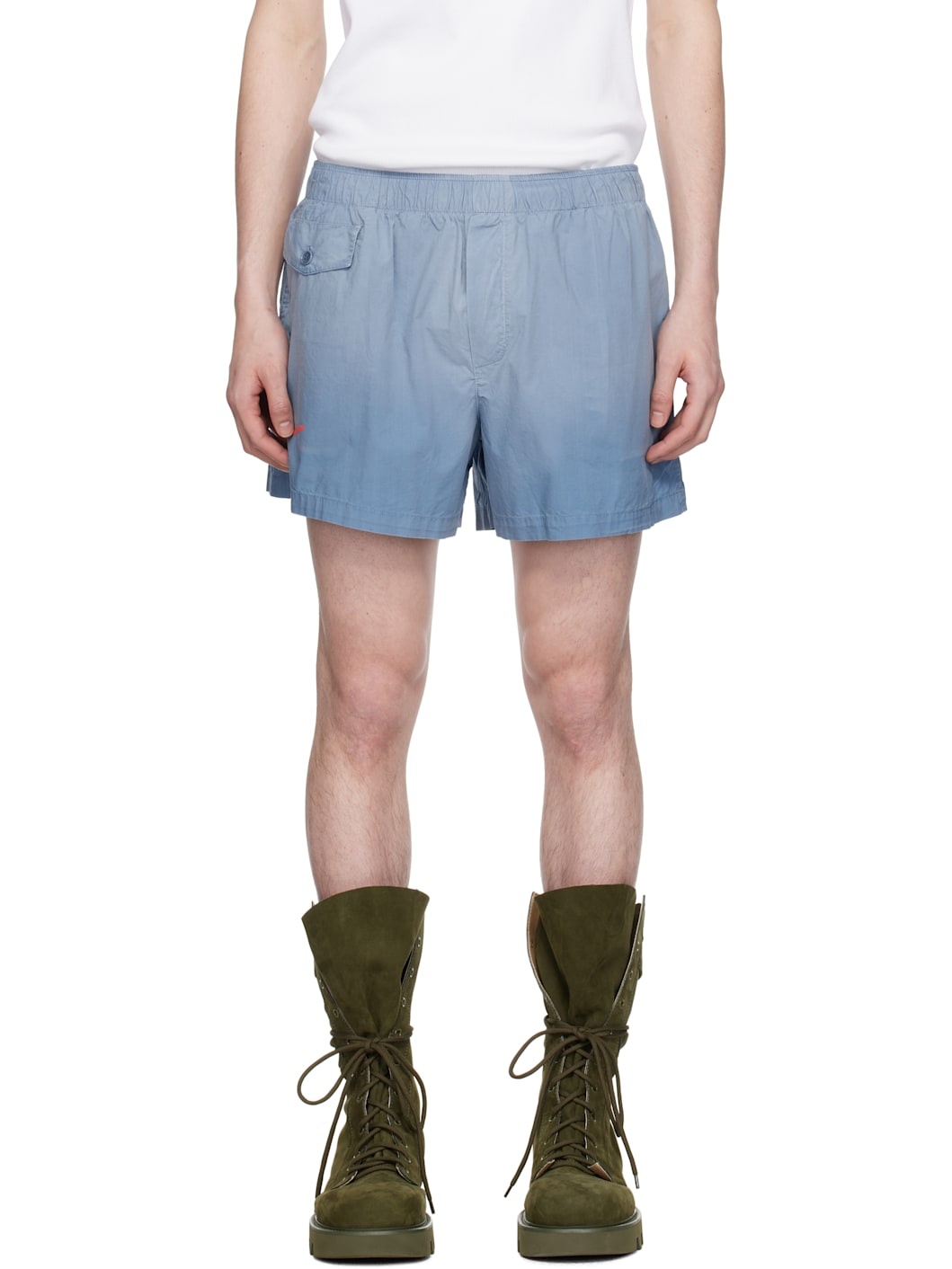 Loose-fit cotton poplin shorts. Fading throughout. · Concealed drawstring at elasticized waistband · Two-pocket styling · Mock fly · Logo flocked at front · Logo printed back pocket Supplier color: Light blue 100% cotton. Made in Portugal 251477M193008