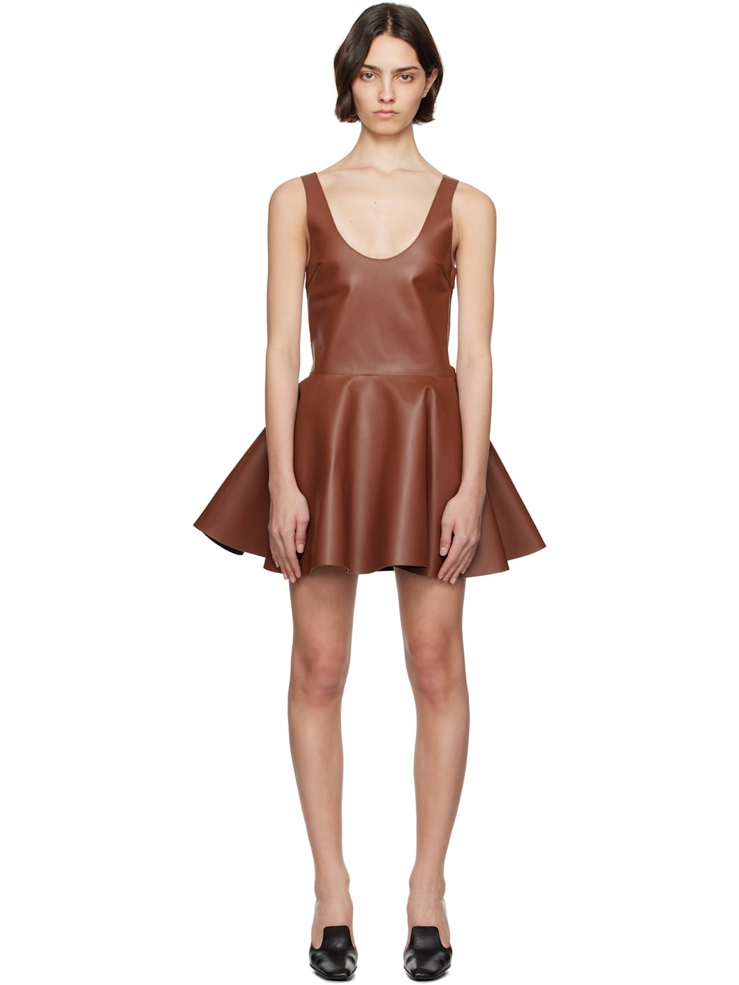 Brown Circle Skirt Leather Minidress